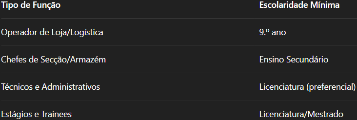- Funções operacionais exigentes fisicamente: principalmente em loja e logística.